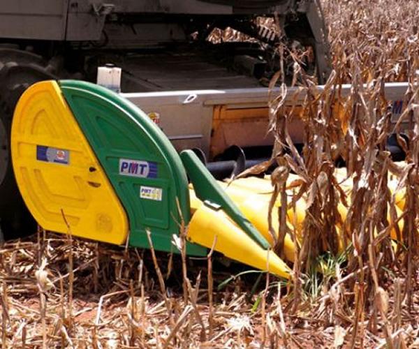 A PMT - Plataforma de Milho Tatu, possui um chassi intercambiável com todos os modelos de colheitadeiras nacionais e importadas, mediante utilização de uma moldura específica para o acoplamento ao elevador de palha. Este sistema permite que um único operador realize o trabalho. Também pode ser responsável pelo nivelamento da plataforma no momento da colheita.